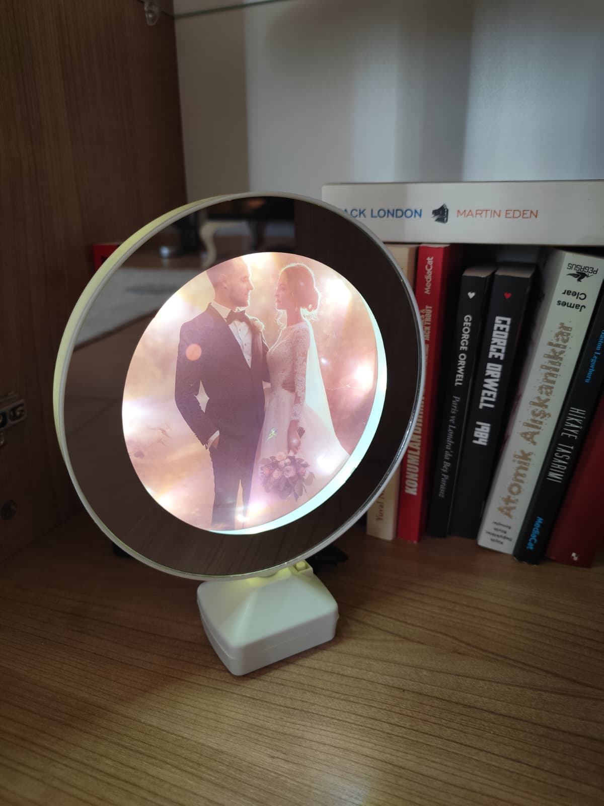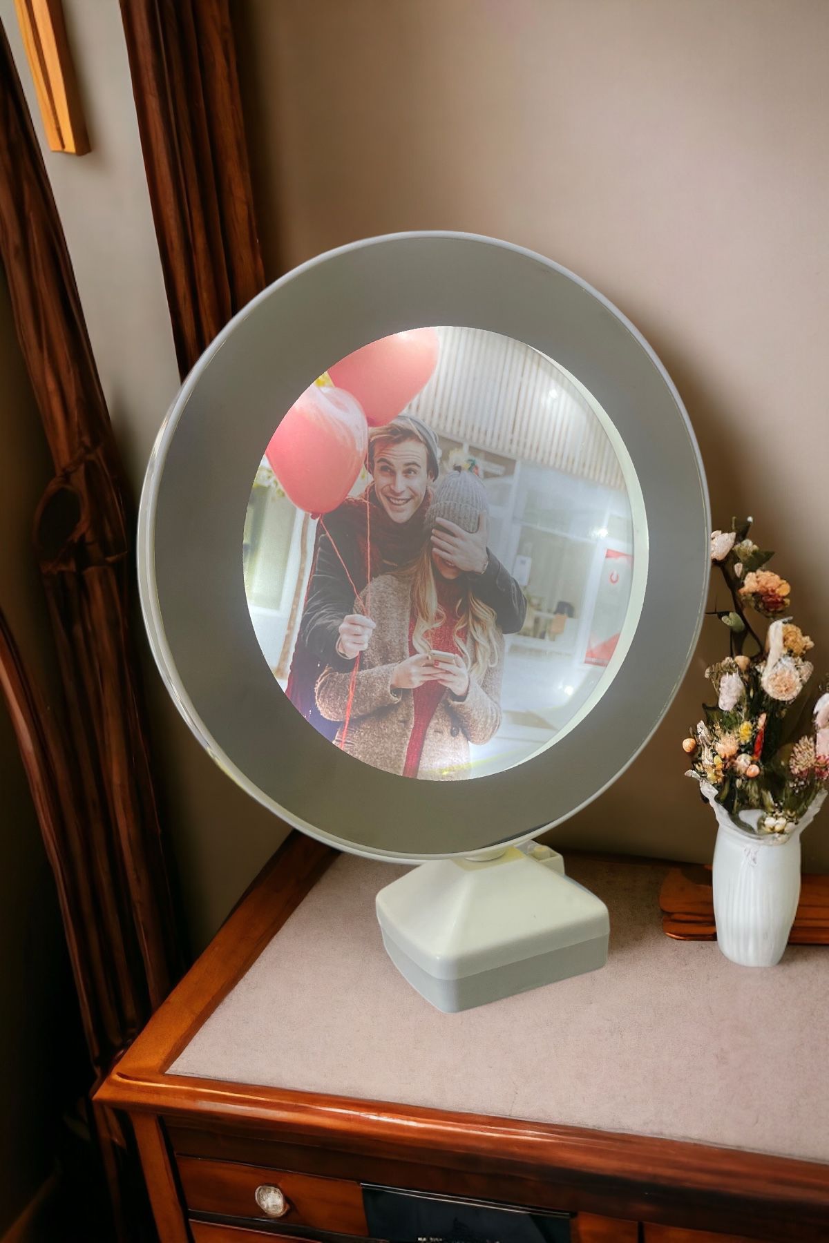 Gündüz baktığında sadece şık bir ayna… ama ışıklar açıldığında sana özel anılar ışıldar. Her bakışta sevdiğini hatırlatan, evine sihir ve duygu katan unutulmaz bir hediye.✨